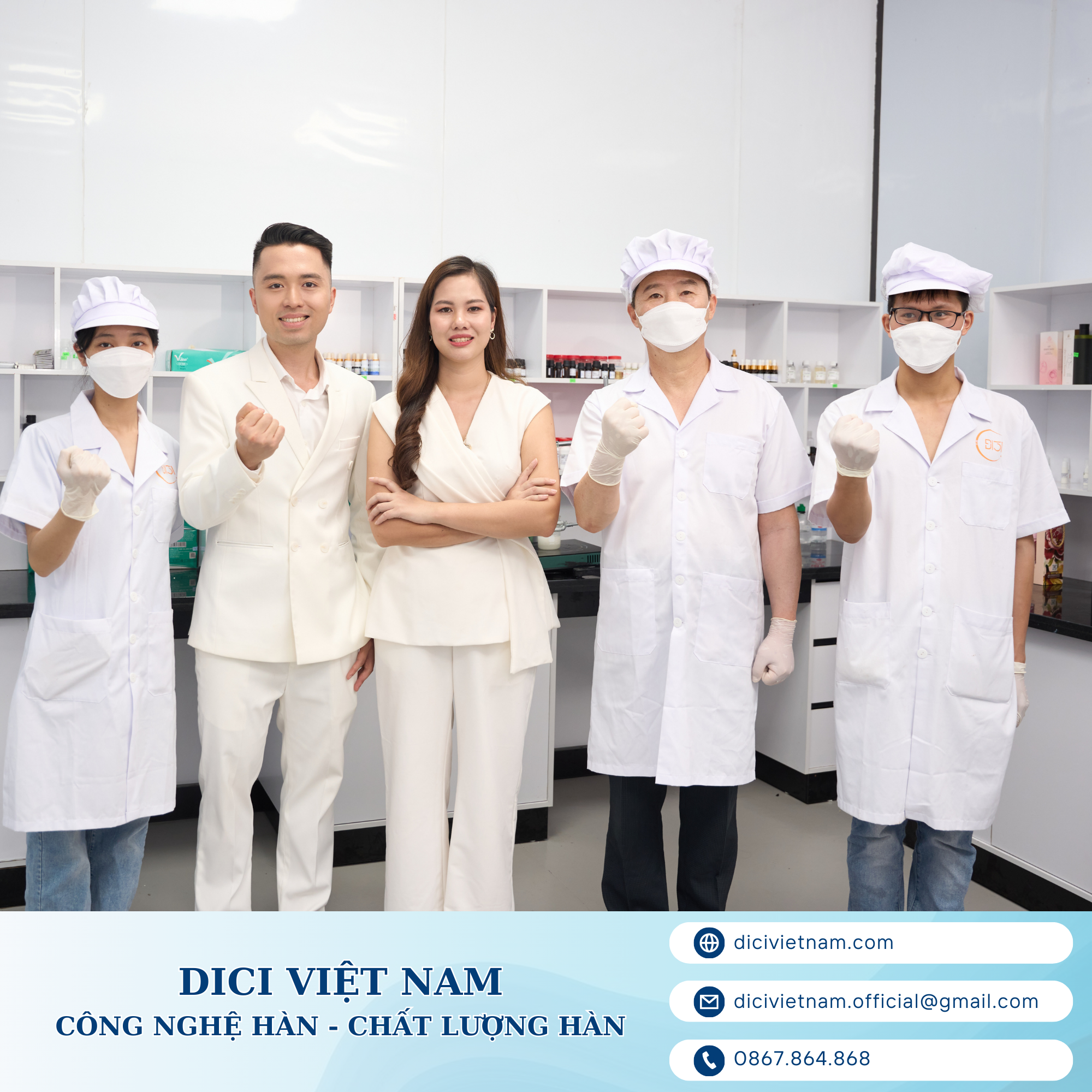 DICI Việt Nam tự hào là đơn vị gia công mỹ phẩm chất lượng cao với hơn 20 năm kinh nghiệm, sở hữu đội ngũ chuyên gia hàng đầu trong ngành và hệ thống dây chuyền sản xuất hiện đại. Chúng tôi cam kết mang lại những dịch vụ tư vấn đáng tin cậy và minh bạch, tạo ra các sản phẩm mỹ phẩm giá rẻ mà vẫn đảm bảo chất lượng vượt trội. Đối tác lựa chọn DICI Việt Nam có thể hoàn toàn yên tâm nhờ vào: